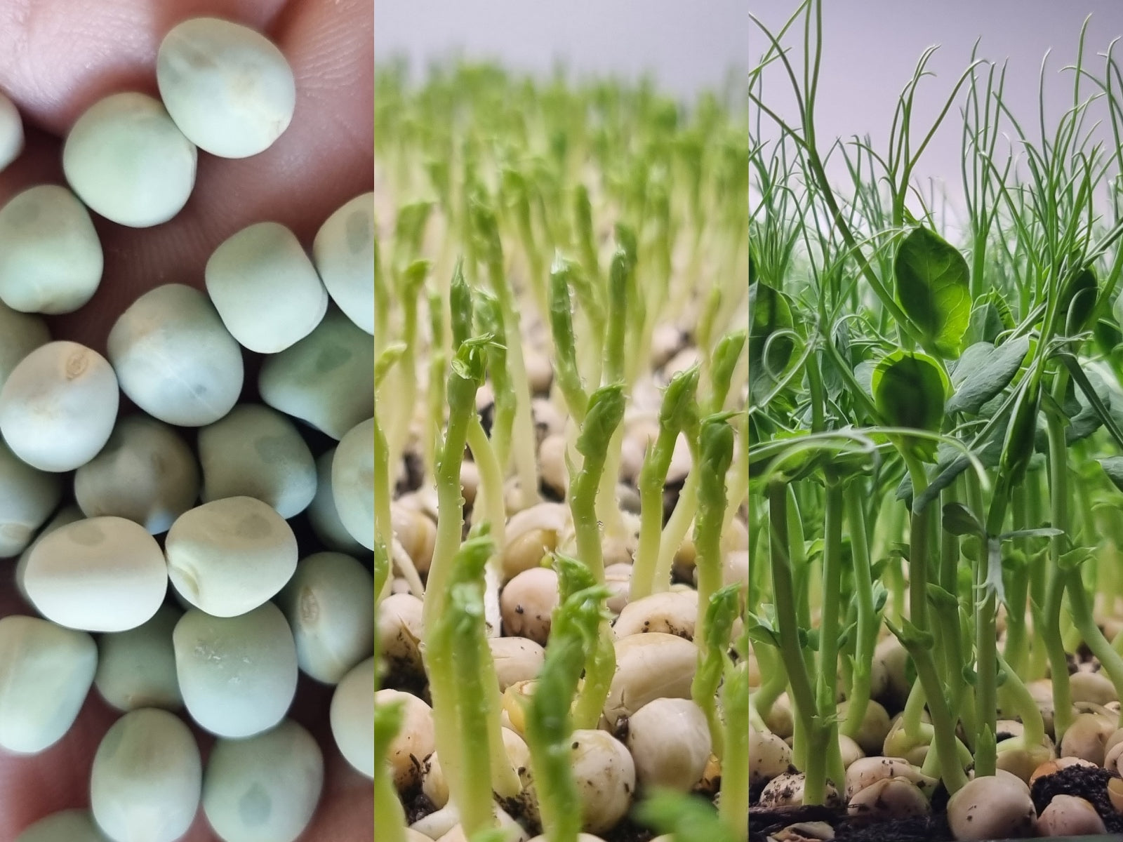 Unsere Microgreens: Diese kleinen Kraftpakete sind vollgepackt mit wertvollen Inhaltsstoffen. Die Mischung aus Sonnenblumen, Erbsen, Radieschen und Brokkoli bringt frischen Geschmack und natürliche Nährstoffe in Deine Ernährung.